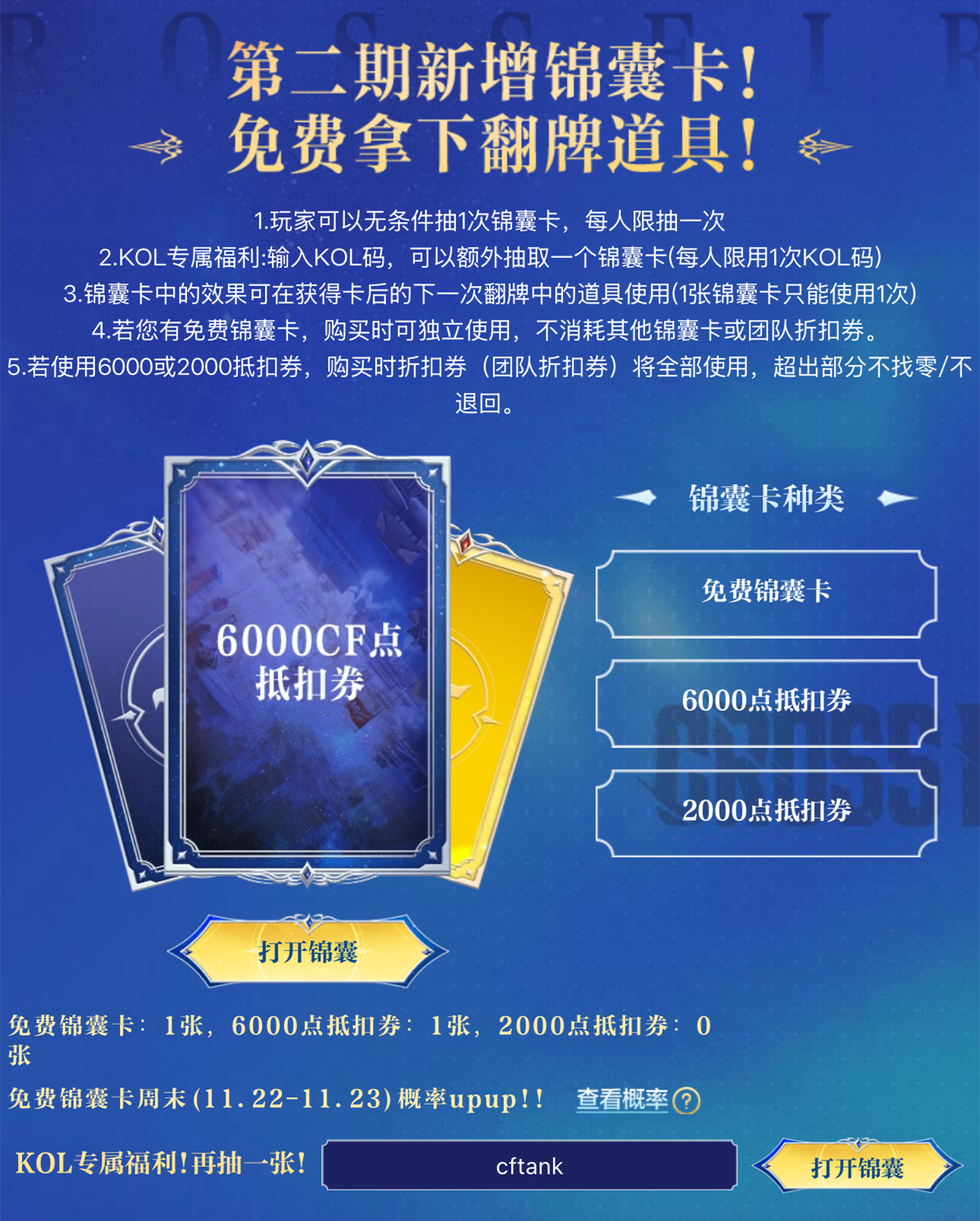 活动时间:11月22日-11月31日活动地址:https://cf.qq.com/cp/a20251031discount/pc/index.shtml