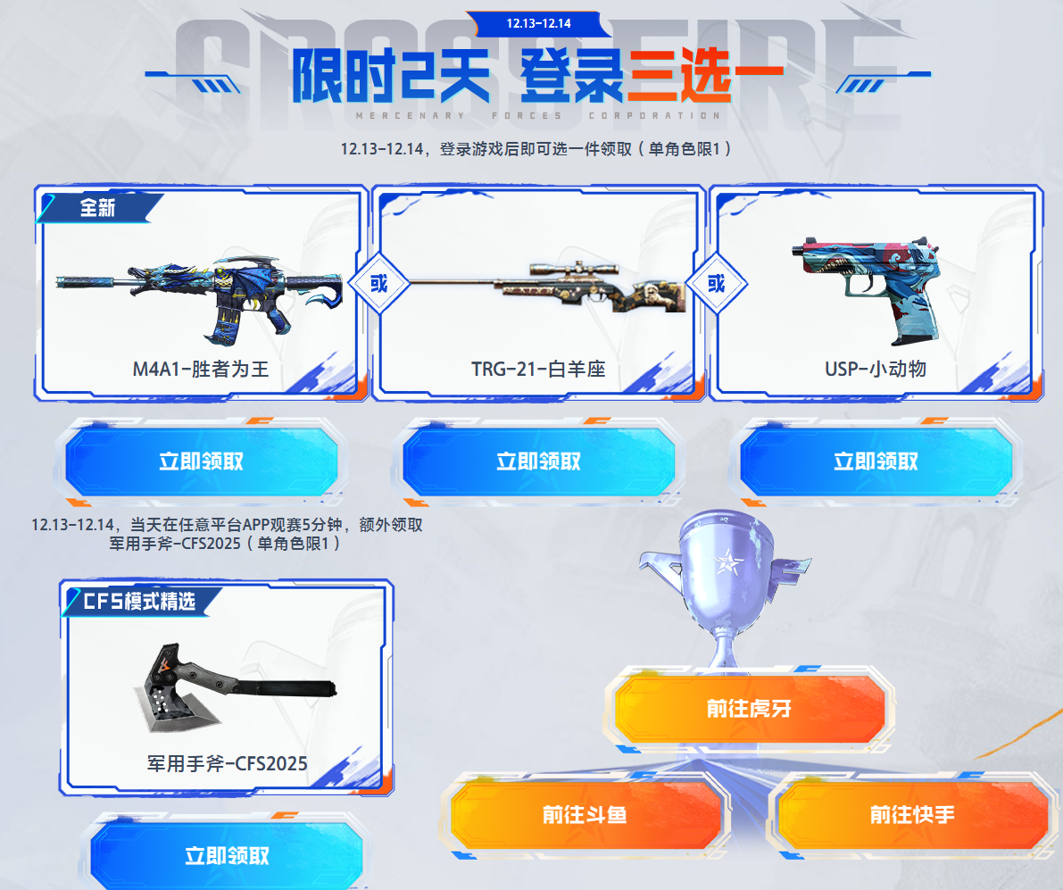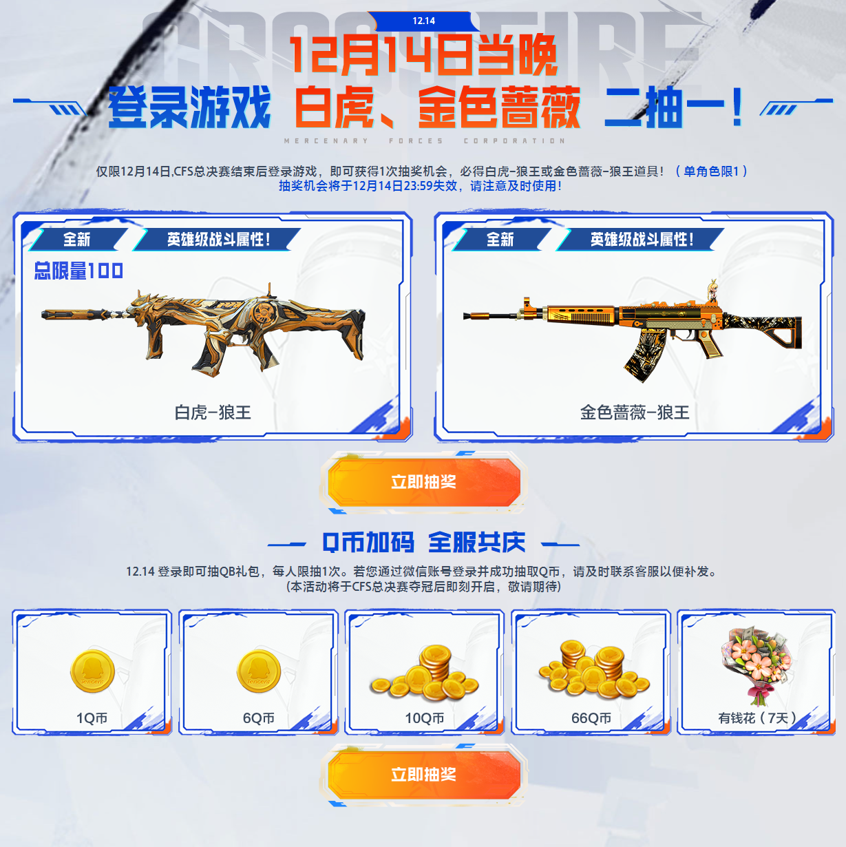 活动时间:12月13日-12月19日电脑地址:https://cf.qq.com/cp/a20251124decsecond/pc/index.shtml手机地址:https://cf.qq.com/cp/a20251124decsecond/h5/h5.shtml