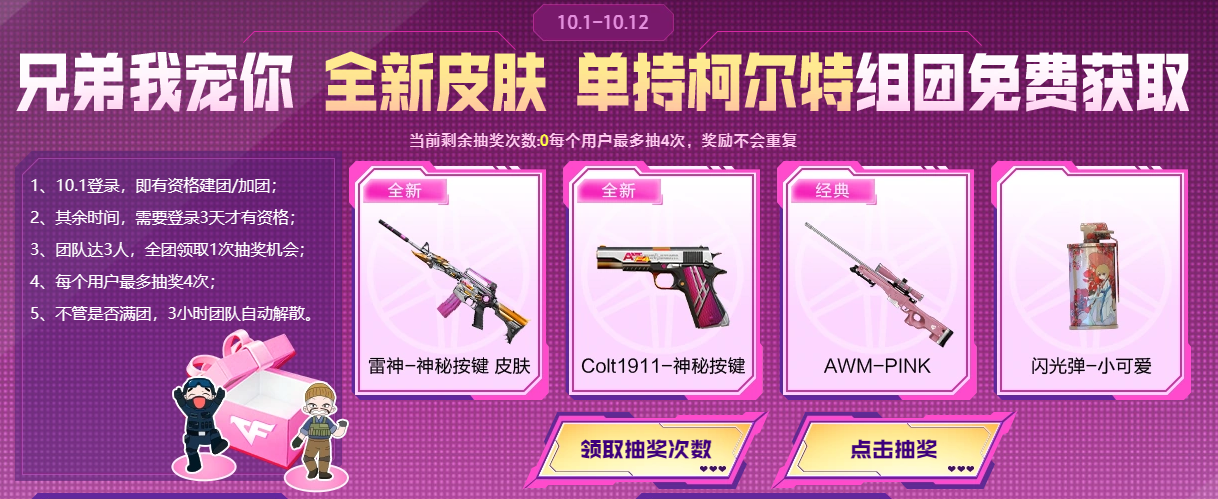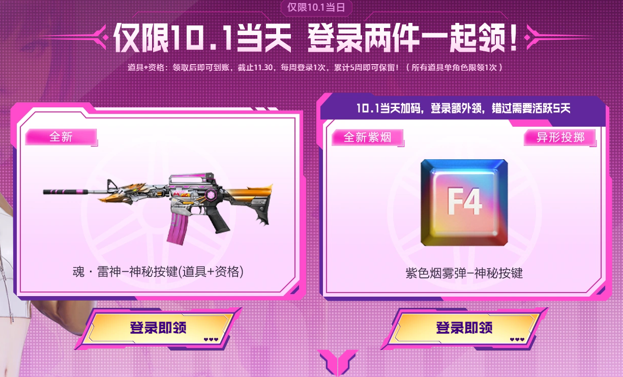 活动时间:10月1日-10月31日电脑地址:https://cf.qq.com/cp/a20250916octfirst/pc/index.shtml手机地址:https://cf.qq.com/cp/a20250916octfirst/h5/h5.shtml